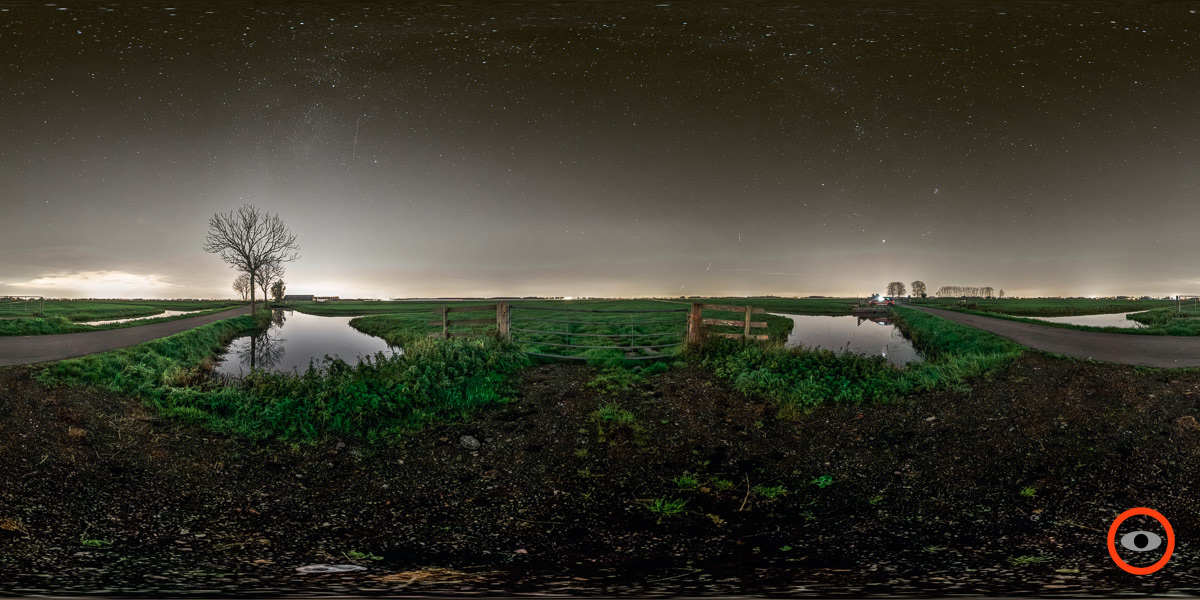 Afbeelding 1b - Dit is het beeld in het veld met een Canon EOS R + Canon EF8-15mm f/4L USM op 8mm brandpunt, 20s belichtingstijd, f4 en ISO1600. Uiteraard is hier van een ideale hemel geen sprake.